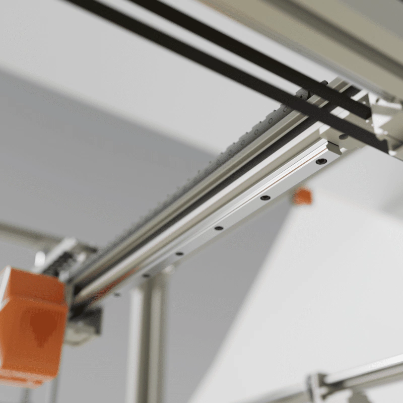 El eje X/Y está diseñado con correas que controlan con precisión el movimiento del cabezal de impresión, permitiendo ajustar la tensión para obtener los mejores resultados. El portacarretes de metal de alta calidad soporta bobinas de filamento de hasta 5 kg, brindando estabilidad en proyectos de impresión de gran escala.